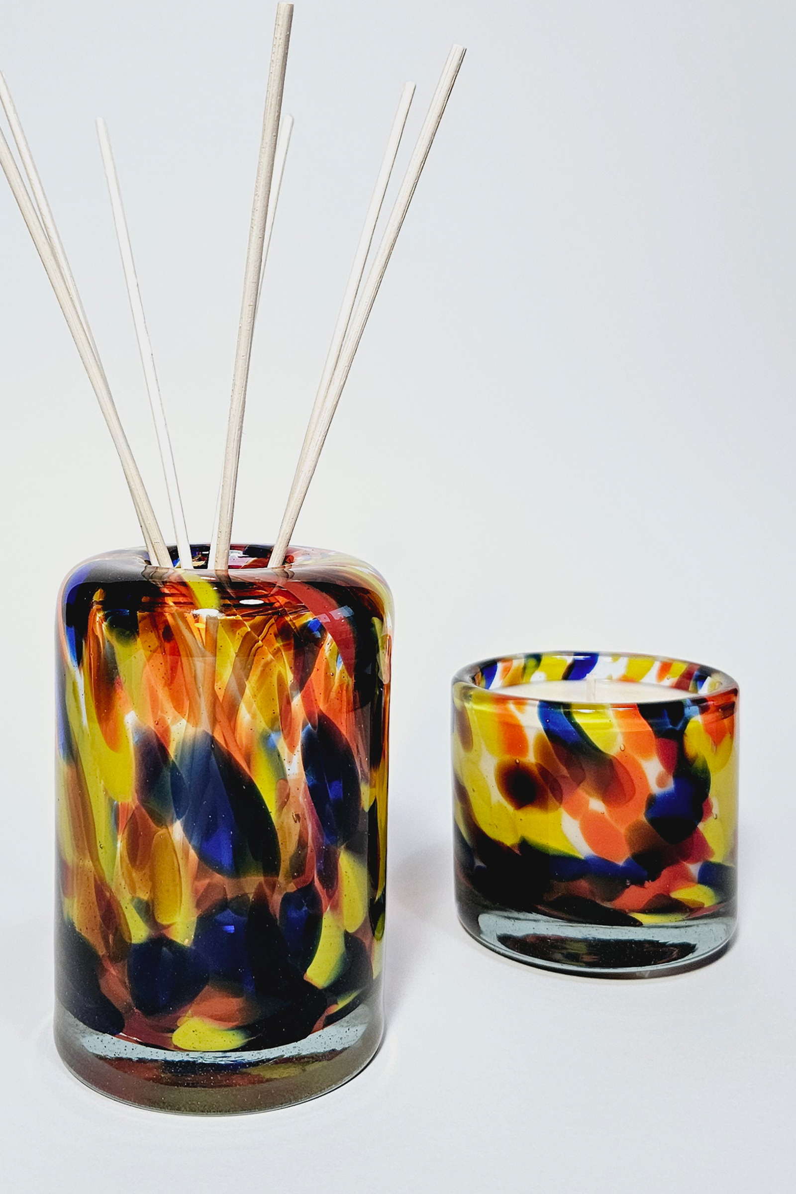 Ten zestaw został stworzony dla osób, które cenią stylowe i spójne elementy dekoracyjne w swoim domu. Dyfuzor subtelnie rozprowadzi odprężający zapach, harmonijnie współgrający z aromatem wydobywającym się ze świecy. Wielokolorowy design zestawu – pełen odważnych odcieni – wprowadzi do wnętrza błysk nowoczesności i śmiałego wyrazu artystycznego. Pozwól przenieść się w świat kreatywności i barw!